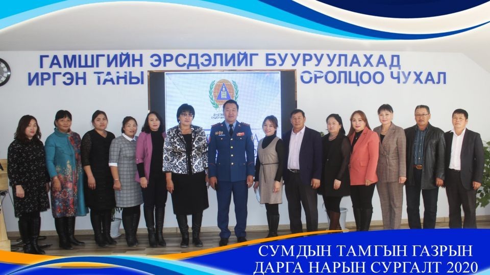 Сургалтын хүрээнд Гамшгийн эрсдэлийн удирдлага, үнэлгээ, гал унтраах, гамшгаас хамгаалах, эрэн хайх аврах ажиллагааг зохион байгуулах, мал амьтны гоц халдварт өвчнөөс урьдчилан сэргийлэх, хорио цээрийн дэглэм зохион байгуулах талаар мэдлэг олгосон юм.