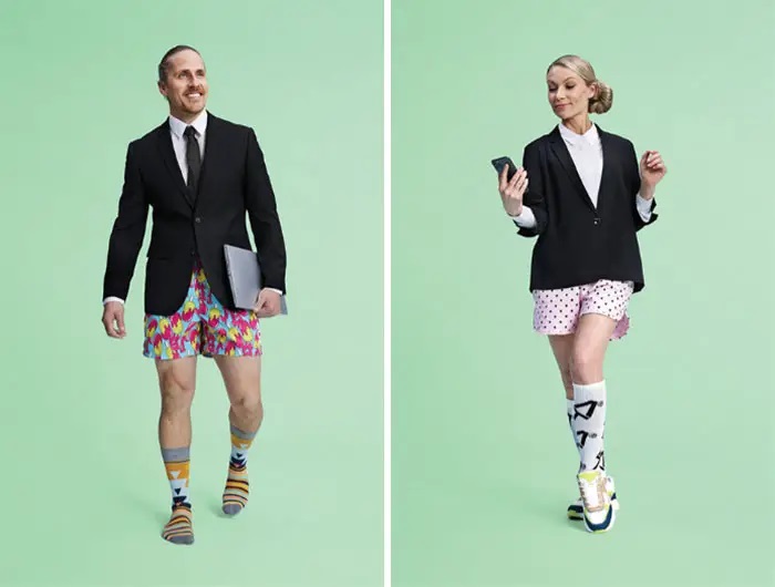 Тэгвэл Канадын Henri Vézina брэнд цар тахлын үед гэрээс ажиллахдаа өмсөх шинэ загваруудаа танилцууллаа. Эрчүүдэд зориулан, пиджак, цамцтай ч өмдгүй ажиллах загвар гаргасан. Гэрт байхад өмд харагдахгүй болохоор тэр.