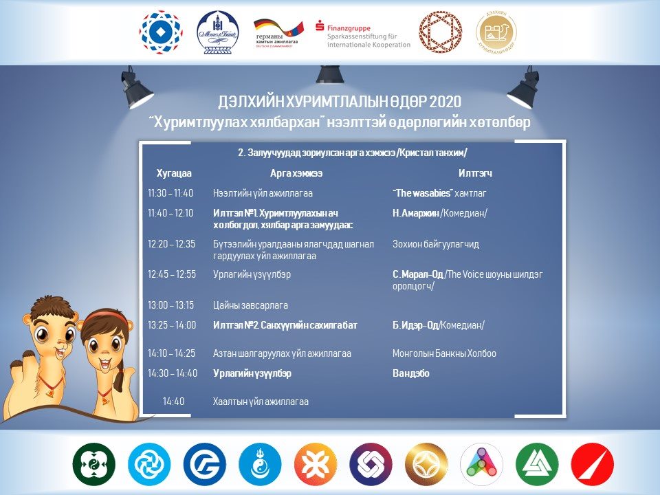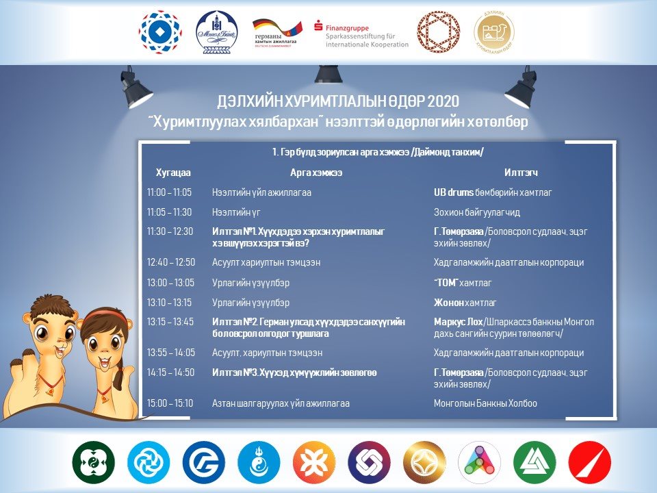 Тус арга хэмжээний үеэр хүүхдүүдийн нас насны онцлогт тохируулан хуваасан хоёр танхимд төрөл бүрийн сонирхолтой арга хэмжээ зохион байгуулахаар төлөвлөсөн байна. Жишээлбэл, 7-12 насны хүүхдүүдэд зориулан “Хүүхдэдээ яагаад хуримтлалыг хэвшүүлэх хэрэгтэй вэ?”, ХБНГУ-д хүүхдэдээ санхүүгийн боловсрол олгодог туршлага зэрэг санхүүгийн салбарын мэргэжилтнүүдийн илтгэл, мэдээллийг сонсохоос гадна боловсрол судлаач, эцэг эхийн зөвлөх багш хүрэлцэн ирж, хүүхэд хүмүүжлийн зөвлөгөө өгнө. Харин залуу үеийнхэнд зориулж, хуримтлуулахын ач холбогдол, хялбар арга замууд болон санхүүгийн сахилга бат сэдвээр мэдээлэл өгөх юм. Мөн хүүхэд багачуудын шүтэн биширдэг хамтлаг, дуучид хүрэлцэн ирж ая дуугаа өргөх, азтан шалгаруулах, асуулт хариултын тэмцээн зохиох зэрэг олон сонирхолтой арга хэмжээ төлөвлөжээ.