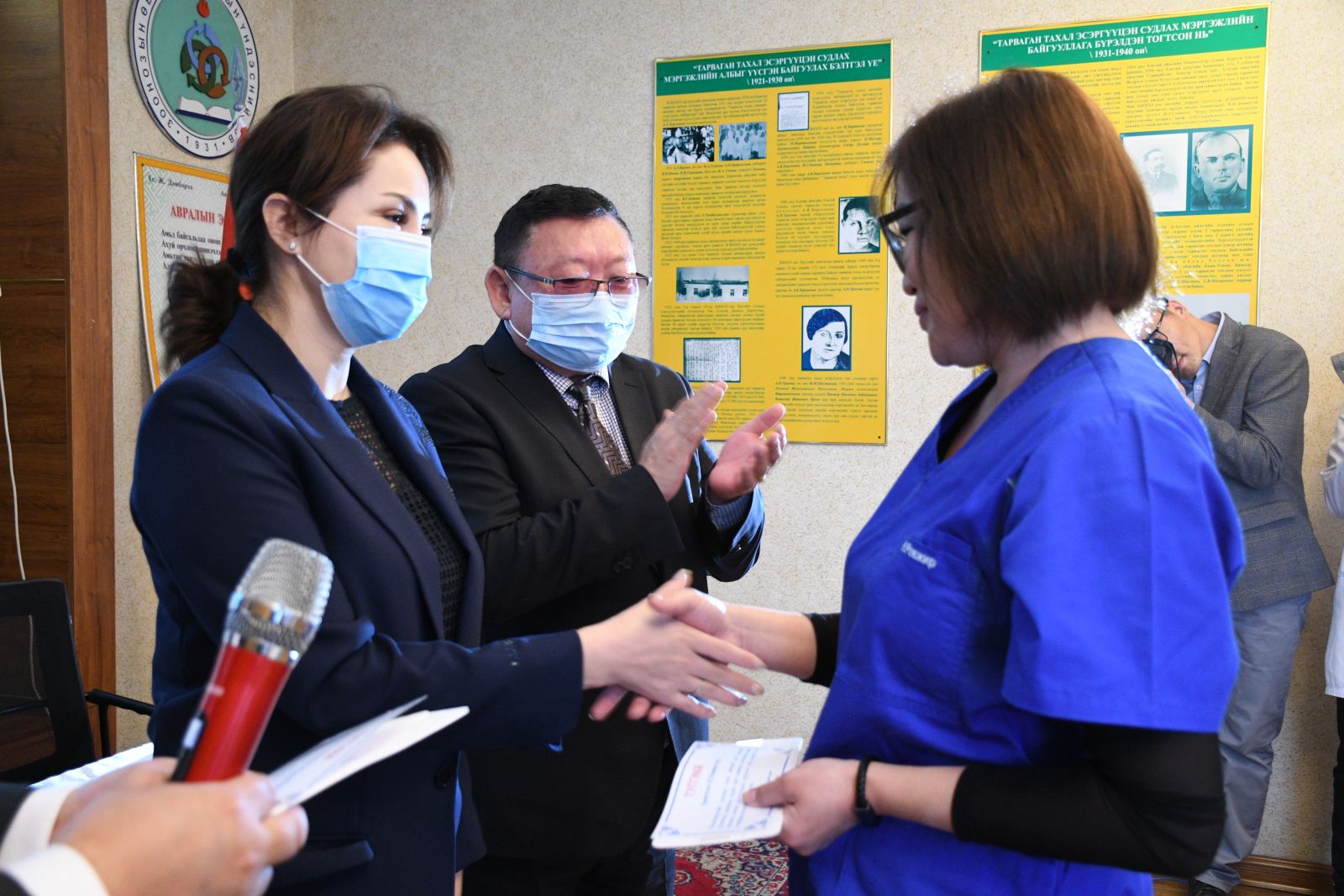Монгол улсын Засгийн газраас Коронавируст халдвараас урьдчилан сэргийлэх, халдварын голомтод ажиллаж буй эмнэлгийн ажилтнуудын ар гэрт дэмжлэг үзүүлэх зорилгоор гаргасан шийдвэрийн дагуу Эрүүл мэндийн сайдын тушаалаар Зоонозын өвчин судлалын үндэсний төвийн эмч, мэргэжилтнүүдэд олгож буй мөнгөн тэтгэмжийг Эрүүл мэндийн дэд сайд Ш.Анхмаа гардууллаа.