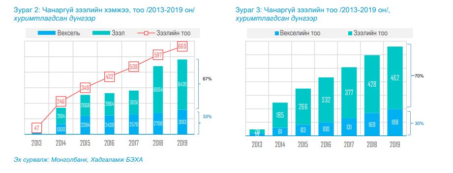 2013–2019 оны хооронд зээл төлүүлсэн тоо жилд дунджаар 66, вексель төлүүлсэн тоо 28 гэсэн үзүүлэлттэй байсан.