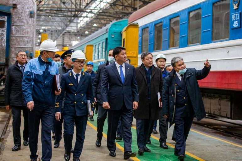 Монгол Улсын Ерөнхий сайд У.Хүрэлсүх “Улаанбаатар төмөр зам” хувь нийлүүлсэн нийгэмлэгт ажиллалаа. Тэрээр Зорчигчийн вагон ашиглалтын депо, Хөдөлгөөний хяналтын төвөөр орсны дараа нийгэмлэгийн удирдлага, албан хаагчидтай уулзав. “УБТЗ” ХНН оны эхний 10 сарын байдлаар 24,8 сая тонн ачаа тээвэрлэсэн нь өнгөрсөн оны мөн үеэс 1,7 сая тонноор илүү байна. Мөн хугацаанд 1,9 сая зорчигч тээвэрлэсэн нь өнгөрсөн онтой харьцуулахад 580 орчим мянган хүнээр бага гэсэн статистик мэдээ гарчээ. Энэ нь “Ковид-19” цар тахлын улмаас олон улсын зорчигч тээврийн галт тэрэг үйлчилгээнд явахгүй байгаатай холбоотой юм. Нийгэмлэгийн хамт олон газрын тос боловсруулах үйлдвэрийн 27 км төмөр замын дээд бүтцийн ажлыг гүйцэтгэж, Зүүнбаян-Тавантолгой чиглэлийн төмөр замын дээд бүтцийг барихад оролцон 88,5 км зам тавиад байна. Сүүлийн гурван жилд мөн 15 шинэ зүтгүүр, өртөөний замд сэлгээний ажил гүйцэтгэх гурван зүтгүүр аваад байгаа тухай Замын дарга Д.Жигжиднямаа танилцуулав.