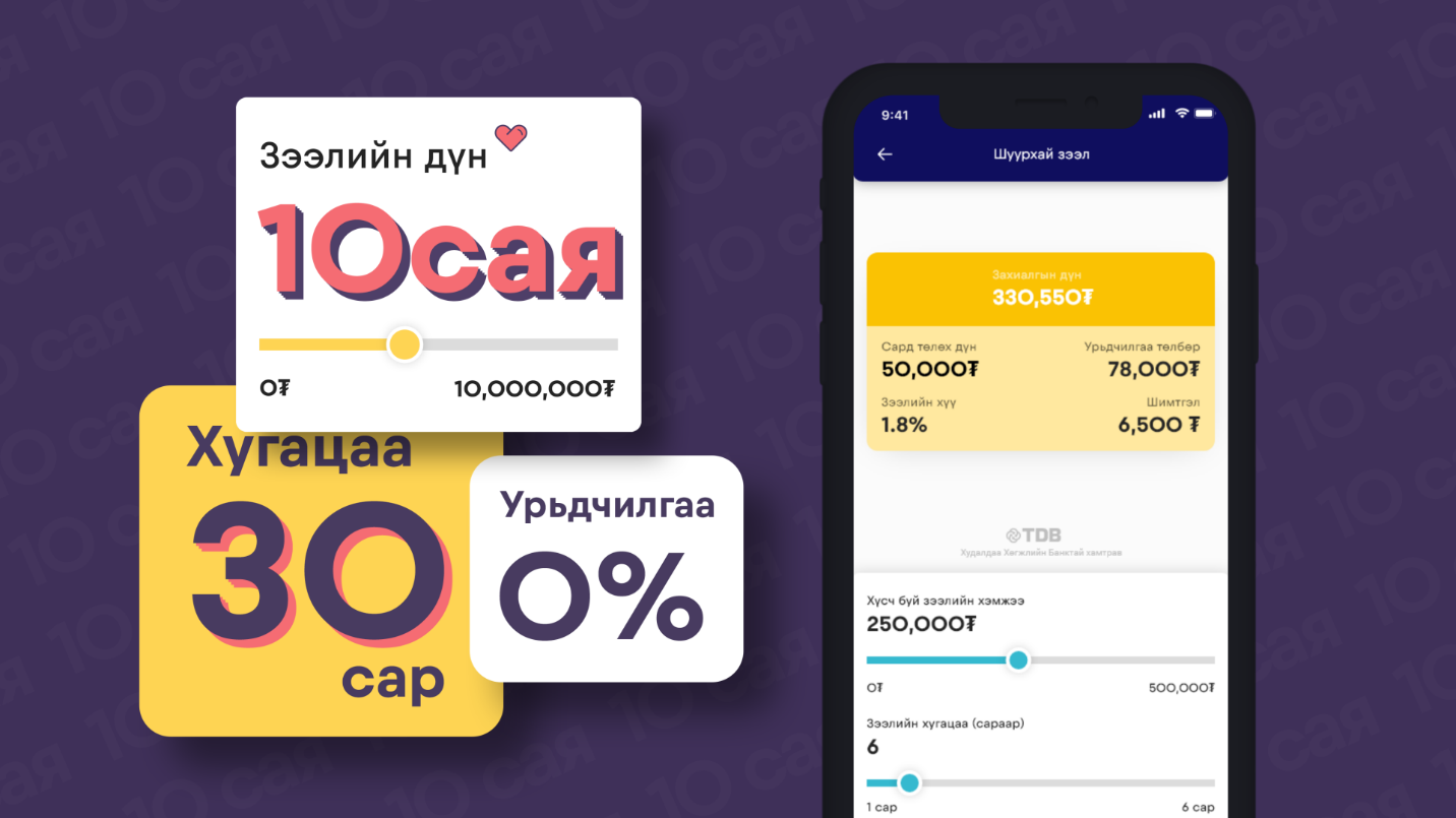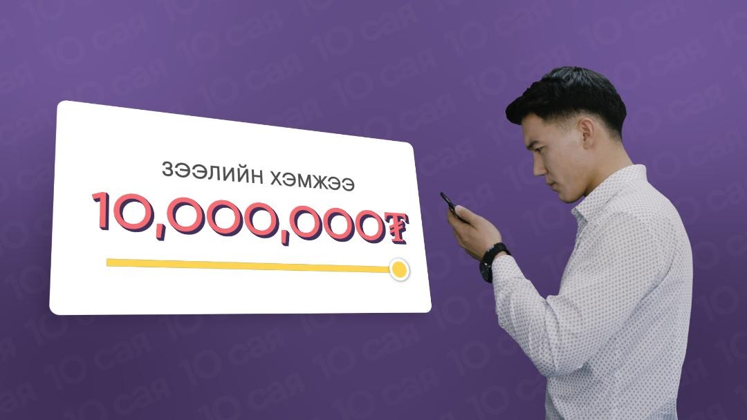 • 10,000,000 төгрөгийг 30 сарын хугацаатай зээлж бүтээгдэхүүн, үйлчилгээг цахим зээлээр авах