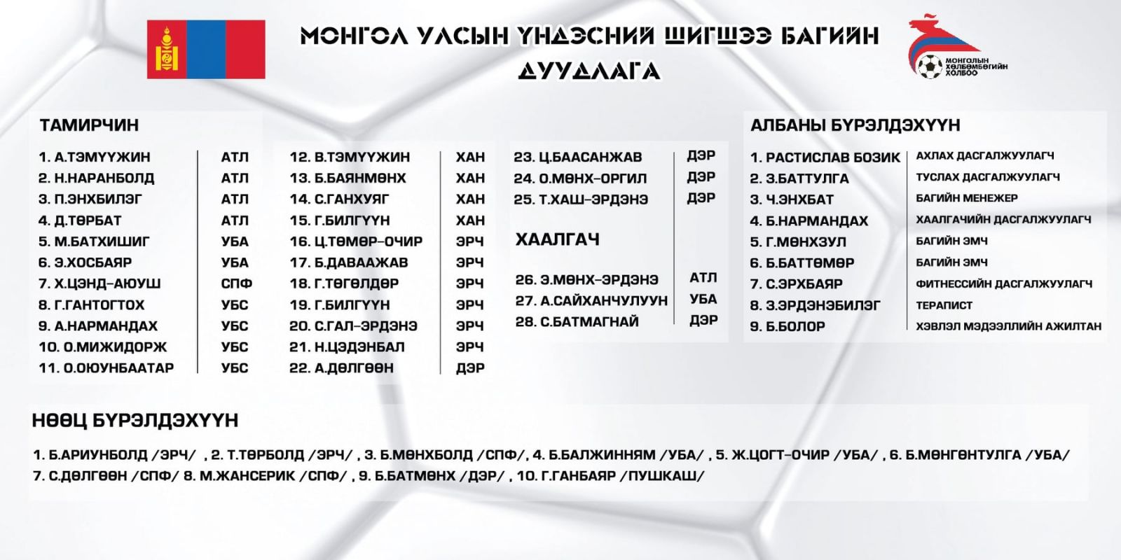 Хөлбөмбөг: Шигшээ багийн нэгдсэн бэлтгэлд дуудагдсан ТОГЛОГЧИД