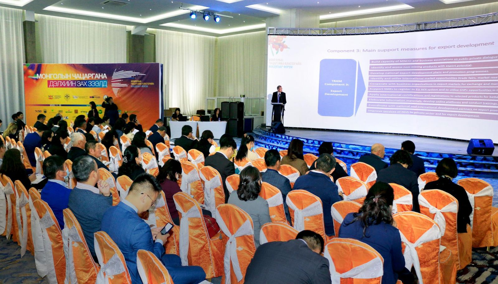 Мөн Европын Холбооны санхүүжилттэй "Монгол Улсын худалдааг дэмжих" (ТРАМ) төслийг 2018 оноос эхлүүлж, Монголын эдийн засгийг төрөлжүүлэх, нэмүү өртөгтэй уул уурхайн бус бараа бүтээгдэхүүний үйлдвэрлэлийг бэхжүүлэх, монголын барааг олон улсын зах зээлд гаргахад нь дэмжлэг үзүүлэх, төрийн байгууллагууд ба хувийн хэвшлийн чадавхыг сайжруулахаар ажиллаж байгаа юм.
