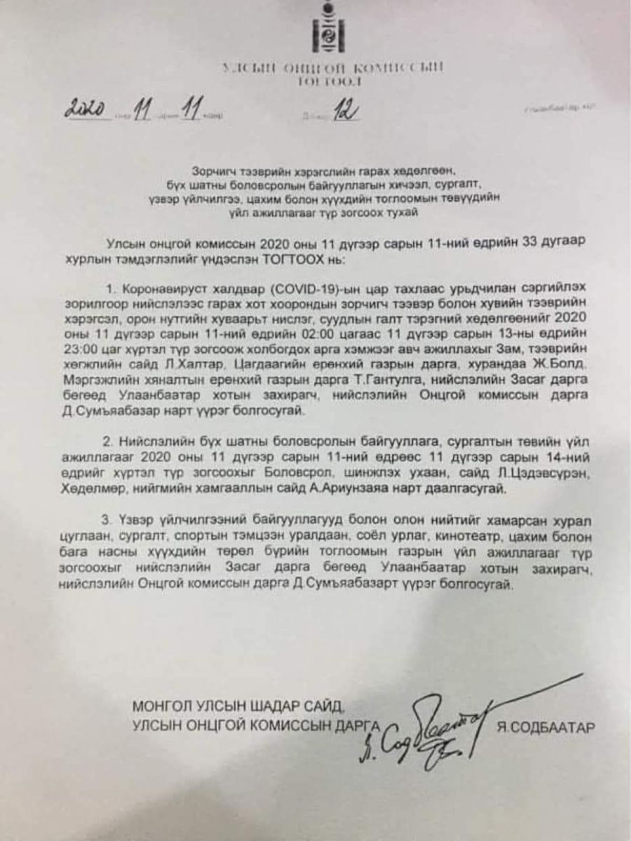 Одоо интернэтээр ажлаа хийж болохоор байгууллагууд ажилтнуудаа гэртээ ажлаа интернэтээр хийлгэх хэрэгтэй байх аа. Зам зуур халдвар авахыг үгүйсгэхгүй шүү дээ. Өндөр настай, дархлаа султай, уушигны өвчтэй хүмүүсийгээ бодож, эрүүл мэндээ бодож ийм шийдвэр байгууллагууд гаргах хэрэгтэй. Үүнийг УОК-оос шаардаж, тушаал гаргасан нь зөв байх аа.