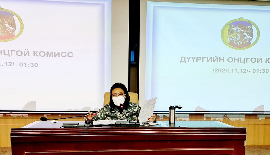 Монгол Улсын хэмжээнд коронавируст цар тахлын шинэ нөхцөл байдалтай холбогдуулан Засгийн газрын шийдвэрээр нутгийн болон төрийн захиргааны байгууллагыг 2020 оны 11 дүгээр сарын 12-ны өглөөний 06:00 цагаас 2020 оны 11 дүгээ сарын 17-ны 06:00 цаг хүртэл бүх нийтийн бэлэн байдлын зэрэгт шилжүүлэн хатуу хөл хорио тогтоосон. Засгийн газрын энэхүү шийдвэрийн дагуу дүүргийн Онцгой комисс шөнийн 01:30 /2020.11.12-ны/ цагт хуралдав.
