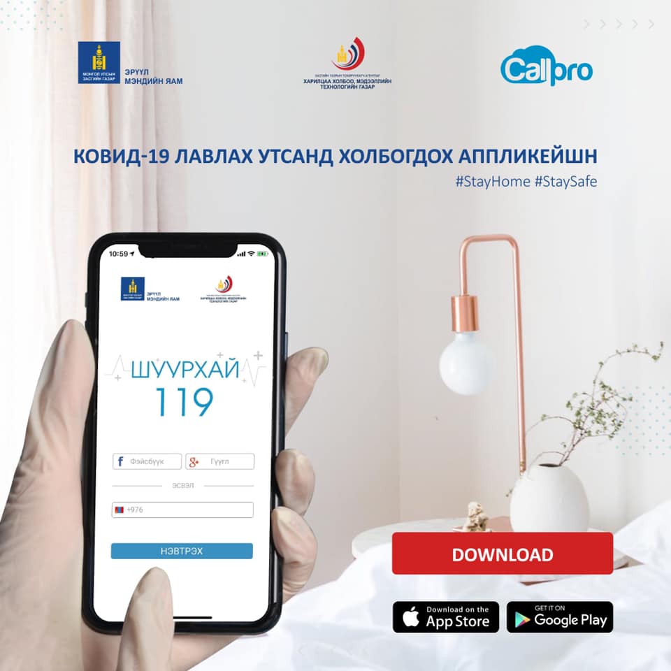 Тус үйлчилгээг илүү хүртээмжтэй болгох үүднээс “Shuurkhai 119” мобайл аппликэйшн болгон хөгжүүлж хэрэглээнд нэвтрүүлсэн байна. Энэхүү аппликэйшнээр Монгол Улсын иргэд дэлхийн аль ч өнцөг булангаас үнэ төлбөргүйгээр COVID-19-ийн лавлах төвтэй шууд холбогдож, зөвлөгөө мэдээлэл авах боломжтой.