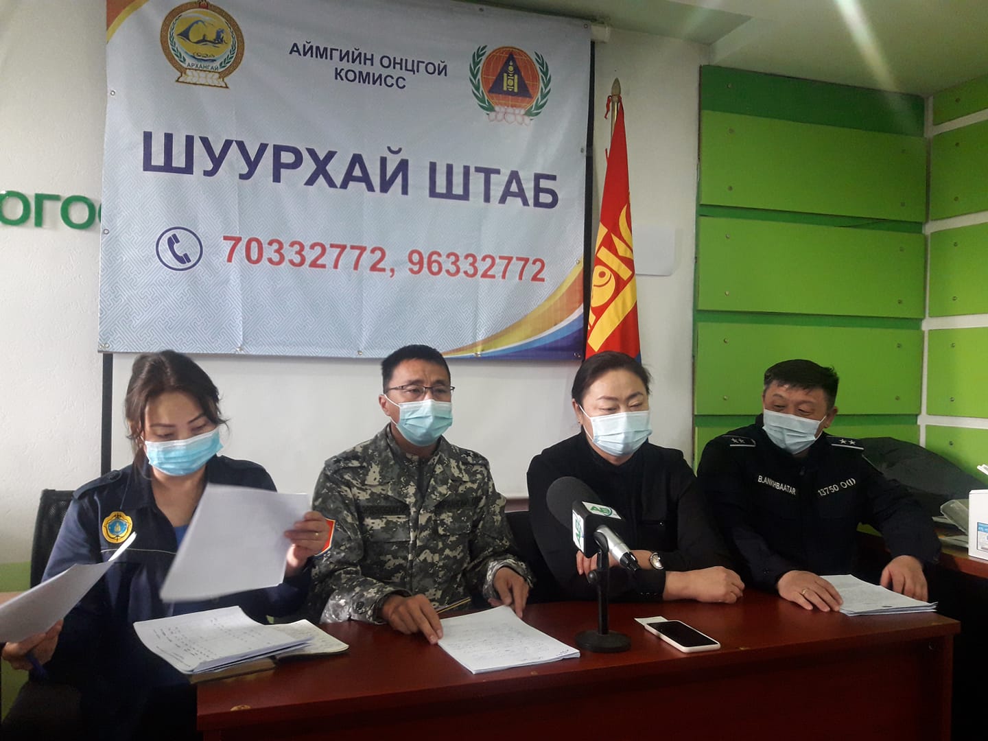 Архангай аймгийн Шуурхай штабаас хэвлэлийнхэнд цаг үеийн нөхцөл байдлын талаар мэдээлэл хийлээ. Мэдээлэлд аймгийн Онцгой байдлын газрын дарга Д.Эрдэнэбаатар, ЭМГ-ын дарга Р.Гандиймаа, МХГ-ын даргын түр орлон гүйцэтгэгч А.Дашхорол, Хэв журмын тасгийн дарга Б.Анхбаатар нар оролцов.