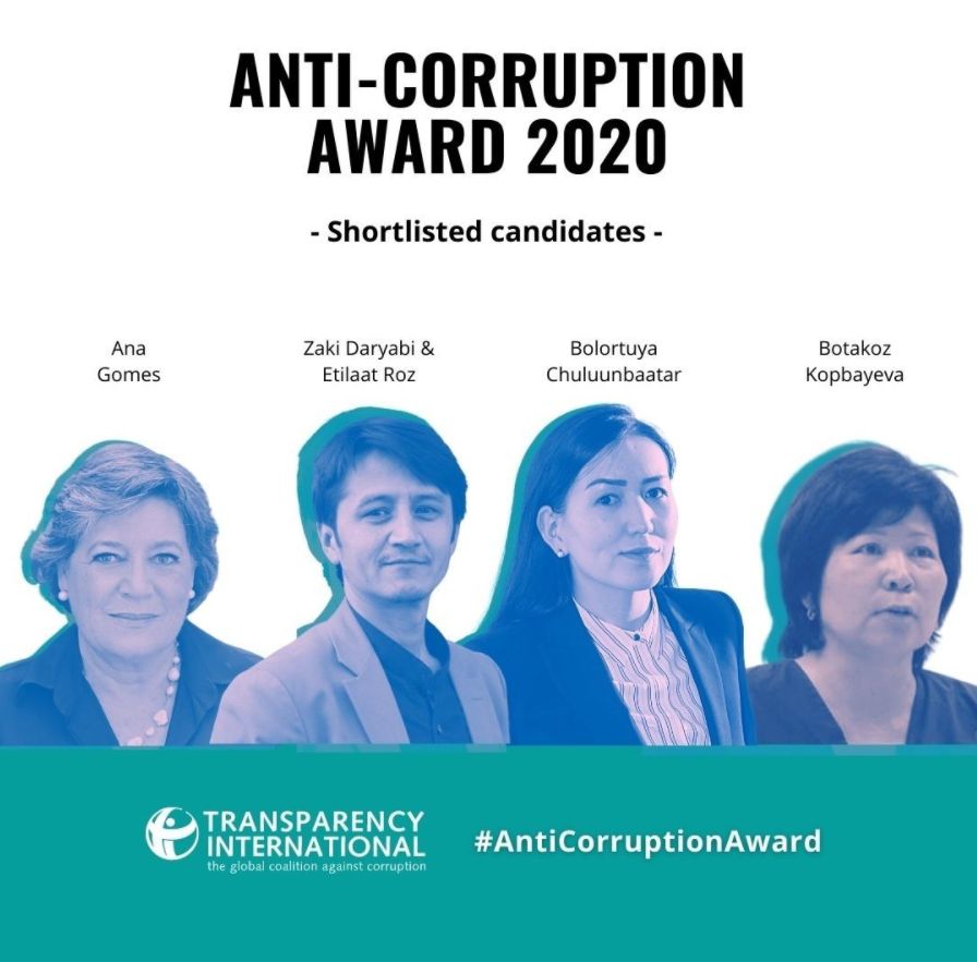 Transparency International олон улсын байгууллагын "Anti-Corruption Award 2020" буюу Авлигын эсрэг оны шилдэг шагналд нэр дэвшсэн дөрвөн хүний нэгд Монголын сэтгүүлч нэрлэгджээ.