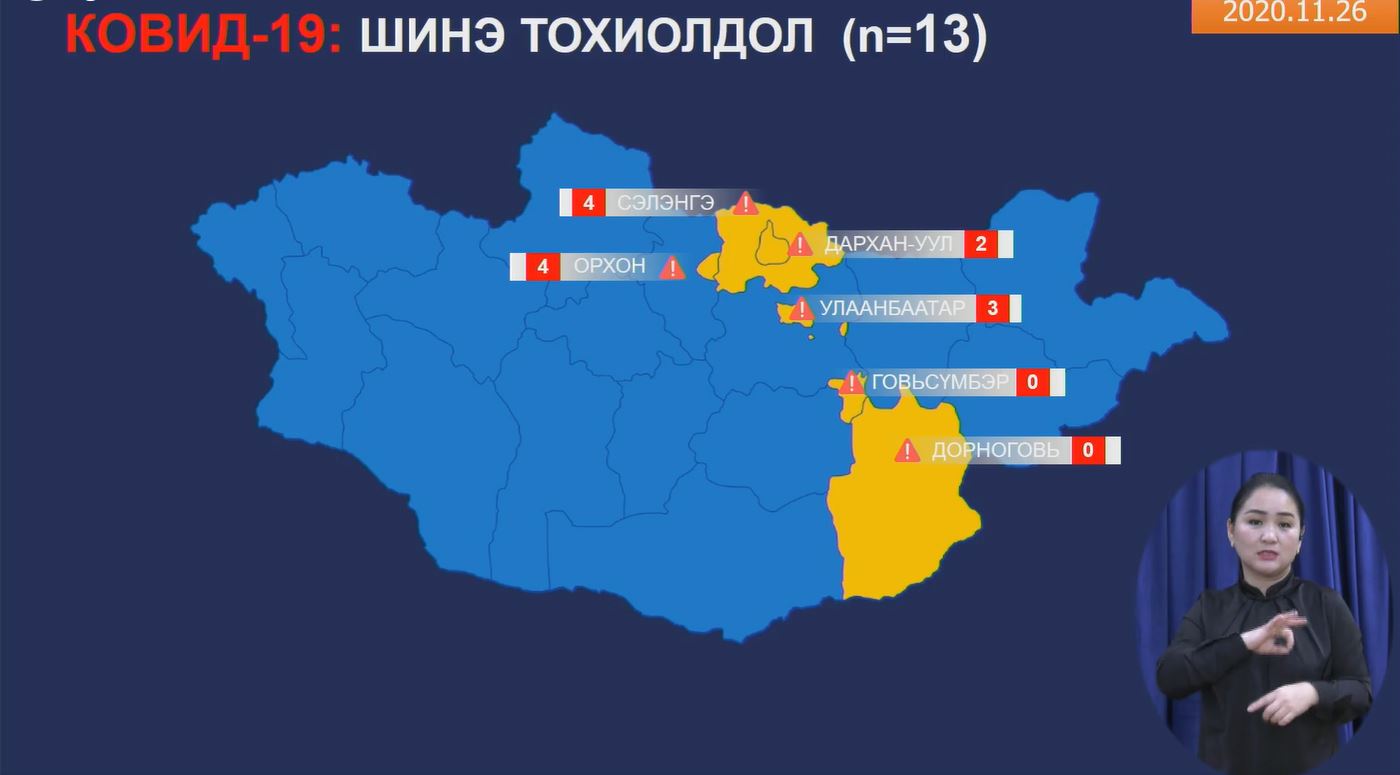 ЭМЯ-аас коронавируст халдварын нөхцөл байдлын мэдээллийг хүргэж байна /2020.11.26, 11:00 цаг/
