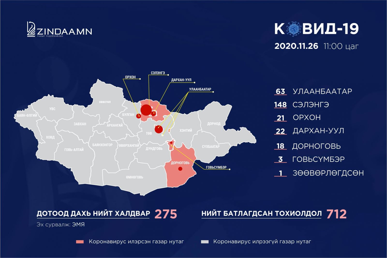 Эрүүл мэндийн яамнаас өнөөдрийн /2020.11.26/ 11:00 цагийн ээлжит мэдээллээ өглөө.
