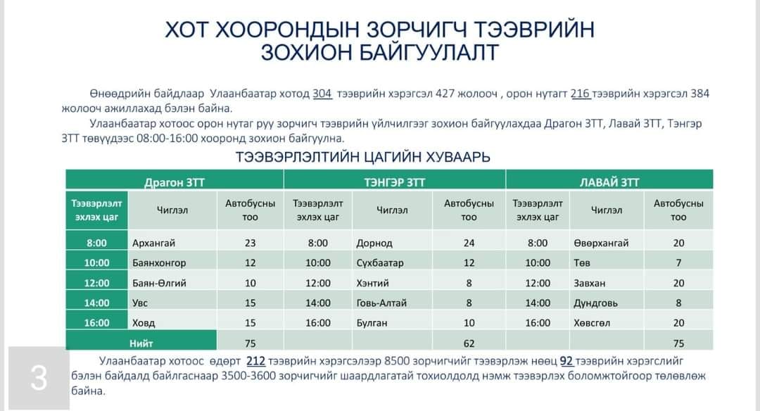 Иргэдийн 70 хувь нь нийтийн тээврээр, 20 хувь нь хувийн автомашинаар, 10 хувь нь онгоцоор явахаа илэрхийлжээ. Харин орон нутгаас Улаанбаатар хот руу 5,300 гаруй иргэн ирэхээр бүртгүүлээд байна.