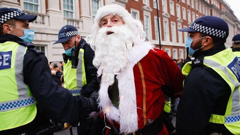 Өнгөрөгч бямба гарагт Лондон хотын төвд Save Our Rights UK хөдөлгөөний зохион байгуулсан хөл хориог эсэргүүцэгчдийн жагсаалд оролцогчдоос 60 гаруй хүнийг баривчилсан байна. Лондонгийн Цагдаагийн газрын мэдээлснээр, тэднийг хүний эрхийн олон зүйл заалтуудыг, ялангуяа халдварт цар тахлын үеийн хэм хэмжээг зөрчсөн үндэслэлээр баривчилсан гэжээ. Эсэргүүцлийн жагсаалд оролцогчдын ихэнх нь амны хаалтгүй байсан бөгөөд цагдаа нар руу шүгэлдэж хашгиралдан, тарахыг хүссэн шаардлагыг нь огтхон ч хүлээж авахгүй байсан аж. Тэд “Зул сарын шилдэг бэлэг бол бидний эрх чөлөө”, “Амны хаалтнаас татгалзацгаая”, “Биднийг хянахаа зогсоо” зэрэг уриа лоозонгууд барьсан байв. Британийн Дотоод хэргийн газрын дарга Прити Пател албан үүргээ нэр төртэйгөөр гүйцэтгэсэн цагдаа нарт талархал илэрхийлээд, аль болох олон хүний амь насыг аврахын тулд Засгийн газрын зүгээс хязгаарлалтын арга хэмжээг аваад байгаа талаар онцлон дурдсан байна.