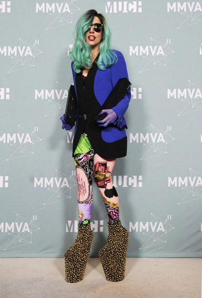 Өндөр өсгийтэй гутал, гаж стиль бол Лэди Гагагийн хэв маяг. Хаана ч явсан Лэди Гага энэ стильдээ үнэнч байдаг билээ. Тэрээр Торонтод болсон MuchMusic Үideo Awards” ёслолын ажиллагаанд оролцохдоо гаж стиль бүхий өндөр өсгийтөөр гоёсон байна. 30-35см зузаан ул бүхий өндөр өсгийт дээр дуучин маань чадварлаг алхаж байсан бөгөөд шүтэн бишрэгчиддээ хайртай гэдгээ мэдэгдэж байлаа.