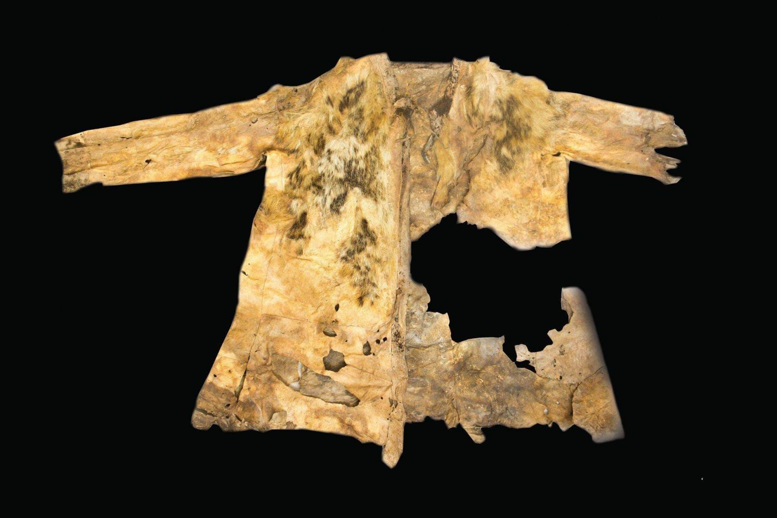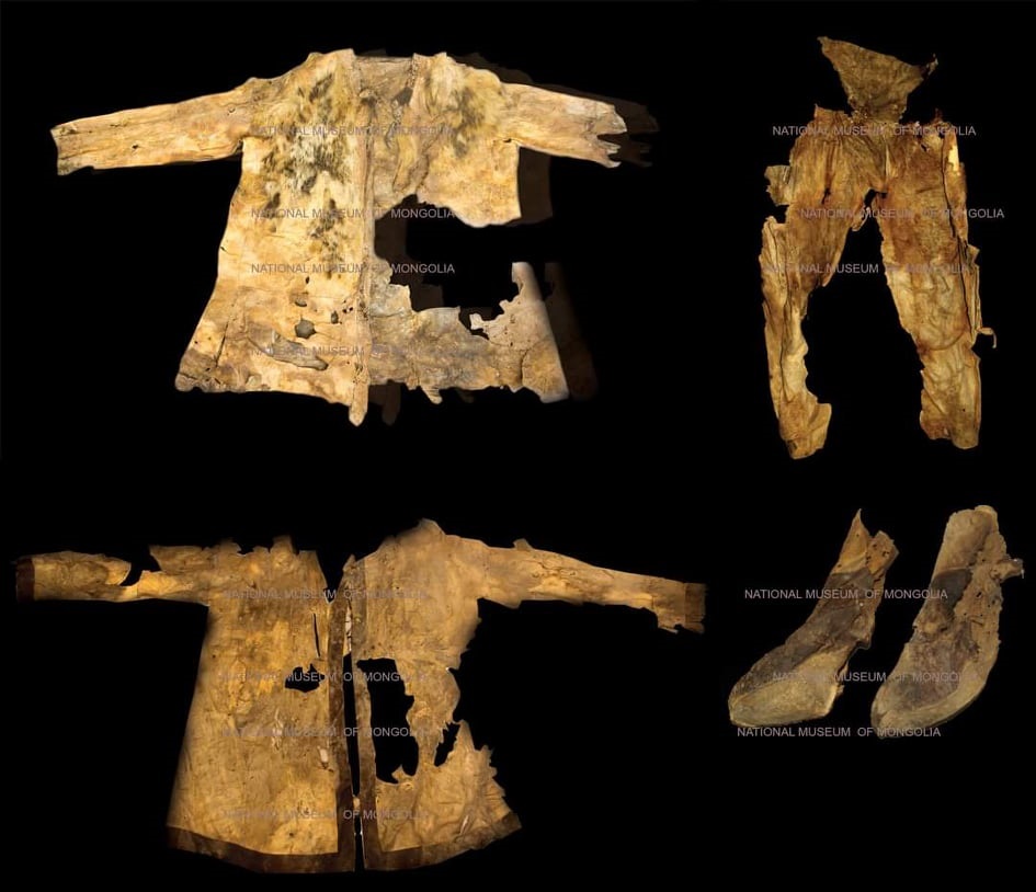 Агуйн баруун амны гадна талд хар сортой зэрлэг амьтны (дорго) арьсаар хийсэн хувцасны тасархай хэсэг шарилын хамт олдсон бөгөөд 45-55 орчим настай, эрэгтэй хүнд уг хувцсыг өмсгөн оршуулсан байлаа. Цайвар шаргал өнгөтэй, урт хар сортой, өтгөн ширүүн үстэй доргоны арьсаар хийж, зах, хөвөөг нь бор өнгэтэй, нарийн зөөлөн, богино үстэй, гялгар сортой, үнэт ангийн арьсаар эмжин урлажээ.