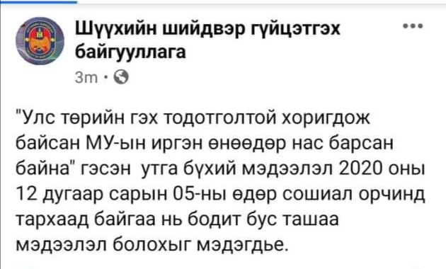 Тэгвэл энэ талаар ШШГЕГ-аас тодруулахад "Энэ бол ташаа, худал мэдээлэл. Хорих ангид ямар ч улстөрч амиа алдаагүй, нас бараагүй" гэх тайлбарыг өглөө.