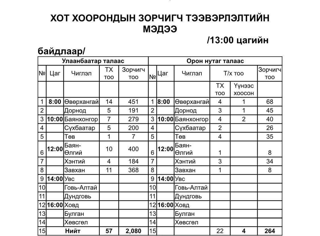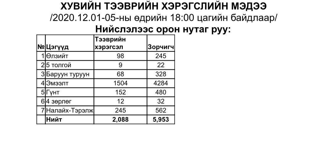 Улсын онцгой комиссын 2020.12.05-ны өдрийн шийдвэрийн дагуу Архангай, Говьсүмбэр, Дархан-Уул, Дорноговь, Орхон, Сэлэнгэ, Өмнөговь аймаг руу зорчих хөдөлгөөнийг маргааш эхлэхээр боллоо.
