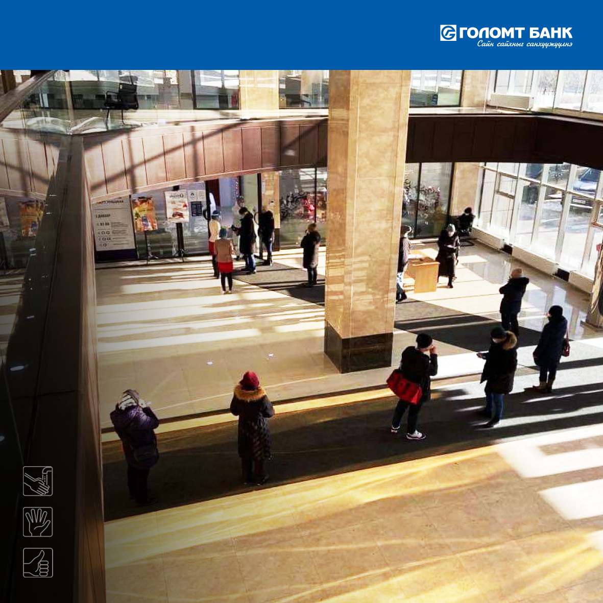 Голомт банкны салбар, нэгжүүд халдвар хамгааллын дэглэмийг чандлан сахиж, харилцагчдыг эрсдэлд оруулахгүй байхад анхааран хүн хоорондын зайг барьж үйлчлүүлэх тал дээр зохион байгуулалт хийж, бүх ATM, CDM, Киоск машинууддаа ариутгал халдваргүйжүүлэлтийг тогтмол хийн харилцагчдаа болон ажилтнуудаа халдвараас сэргийлэх бүхий л арга хэмжээг аван ажиллаж байна. Гэсэн хэдий ч нэг дор олон хүн төвлөрүүлэхгүй байх, үйлчилгээний танхимд хүн хоорондын зай бариулах шаардлагын улмаас харилцагчид гадаа дугаарлах асуудал үүсэж байгаа тул хүйтний эрч чангарсан энэ өдрүүдэд тус банкнаас харилцагчдаа халамжлах үйлчилгээг хэрэгжүүлж, халуун аарц, чацарганаар үйлчилж байна.