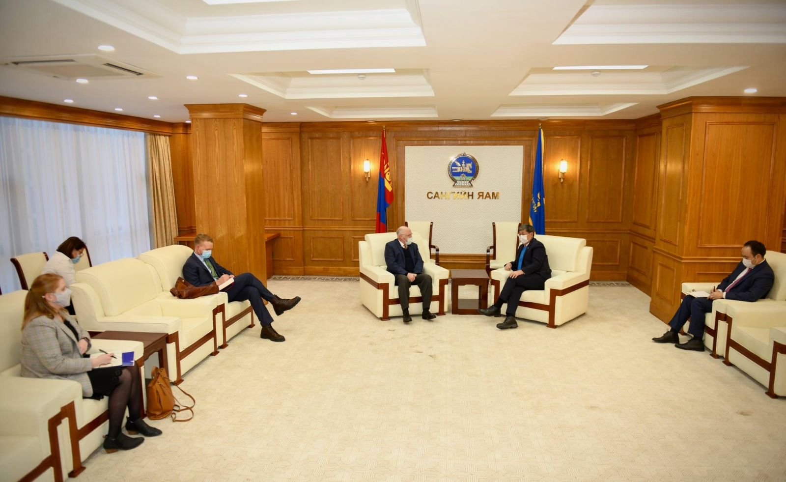 COVID-19-ийн эсрэг вакцин хариуцах Ажлын хэсгийн ахлагч, Сангийн сайд Ч.Хүрэлбаатар АНУ-ын Элчин сайд Майкл С.Клеческитэй уулзлаа.