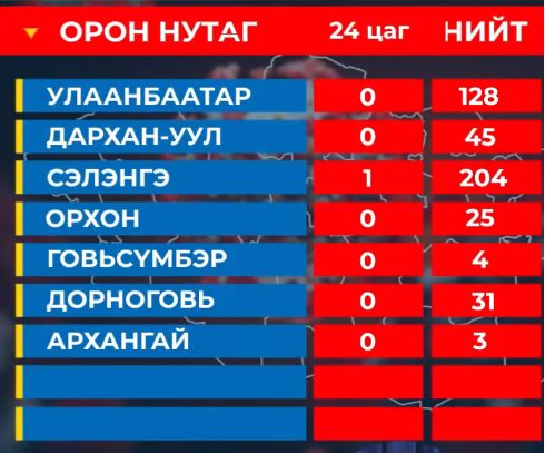 Арванхоёрдугаар сарын 7-нд буюу өчигдөр холбогдох лабораториудад 27488 хүнд шинжилгээ хийхэд нэг хүний шинжилгээнд коронавирус илэрсэн байна. Энэ нь Сэлэнгэ аймаг дахь халдвартай иргэний ойрын хавьтлын хүн байжээ.