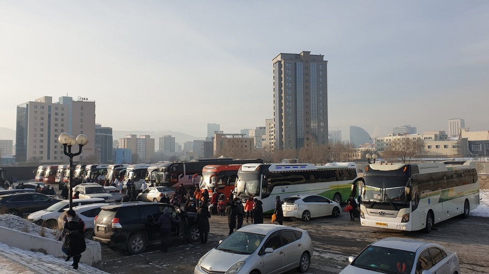 Спортын төв ордны зогсоолоос Архангай, Баянхонгор, Булган, Говьсүмбэр, Дорноговь, Сүхбаатар, Увс, Ховд, Хэнтий аймаг руу явах 29 автобусаар 1221 оюутан, ХААИС-ийн зогсоолоос Баян-Өлгий, Дундговь, Өмнөговь, Сэлэнгэ, Төв руу явах 12 автобусаар 455 оюутан орон нутгаа зорьж байна.