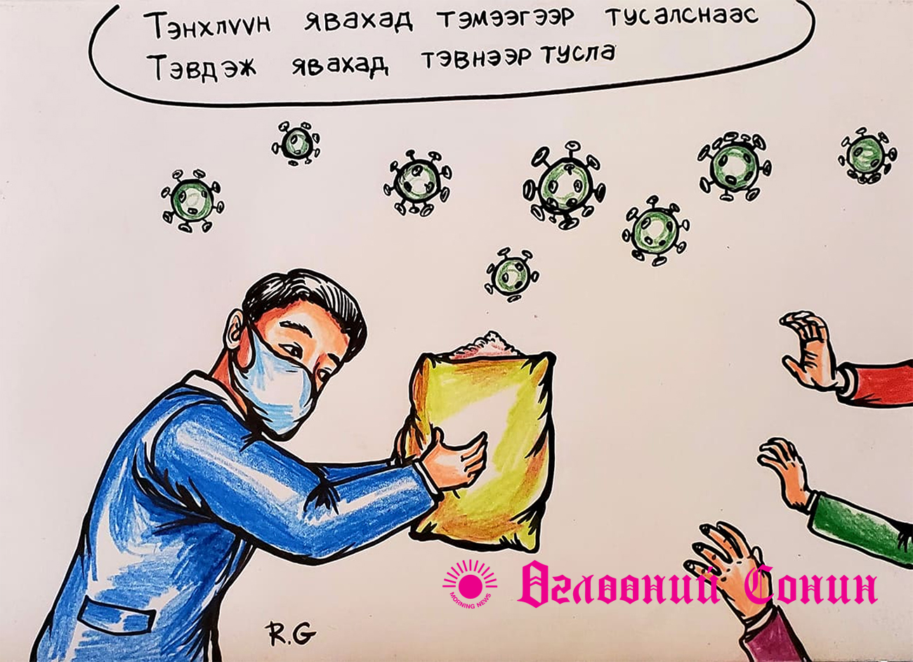 Уг нь энэ удаад УИХ-ын дарга Г.Занданшатар халдварын онцгой бүсэд ажиллаж байгаа албаны хүмүүст эхнэрийн хамт 20 сая төгрөг гардуулан өгч уриалсан ч ангийх нь нөхөд уриалгаас тэгтлээ ташуур авсангүй. Энд тэндгүй л амны хаалт, хамгаалалтын хувцас мэтхэнээр нэрээ гаргахыг хүссэн байх. Үнэн хэрэгтээ бодит байдал дээр захын хороололд өдрийн өчүүхэн орлогоороо ам зууж байгаа сонгогчийн гэрт “Аяга хоол” дөхүүлсэнгүй. УИХ-ын гишүүн Б.Дэлгэрсайханд харъяаглагдах “Болд төмөр ерөө” компани “Улаанбаатар төмөр зам” хувь нийлүүлсэн нийгэмлэгт 50 мянган амны хаалт, 500 сая төгрөгийн тусламж үзүүлэв. Мөнхүү тус компани Сэлэнгэ аймагт 200 сая төгрөгийн хандив тусламж үзүүлсэн юм. Арга ч үгүй байх. Тэр л ус нутгийг ухаж, тоолж барахгүй их мөнгө олж байгаа хүнд 500 сая төгрөг бол мянган малаас өнчин ишиг зүсэлж өгч байгаатай л адил зүйл. Гайхахын хэрэггүй.