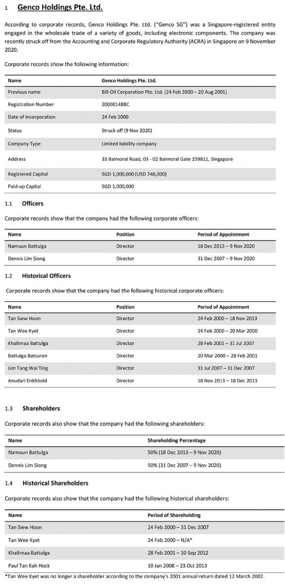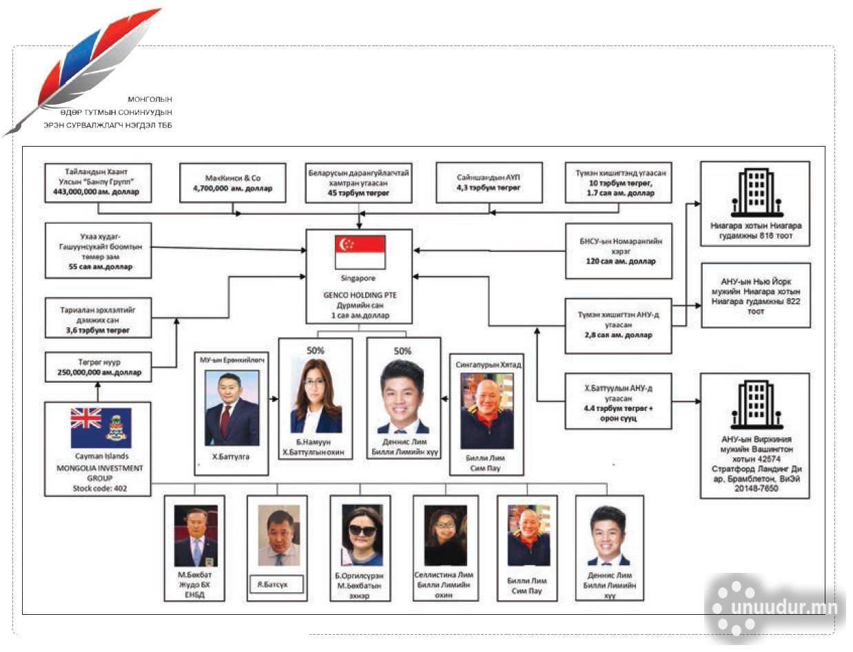Энэхүү нийтлэлээс харахад Ерөнхийлөгч Х.Баттулгын оффшор бүст  байгуулсан “Женко Холдинг Пи-Ти-И” компани байгуулсан. Сингапур улсад бүртгэлтэй “Женко Холдинг Пи-Ти-И” компанийн 50 хувийг Х.Баттулга өөрийн охин Баттулгын Намуун, үлдсэн 50 хувийг Х.Баттулгын оффшор хөрөнгийн манаач Сингапурын хятад Билли Лим өөрийн хүү Деннис Лимээр дамжуулан эзэмшдэг нь баримтаар нотлогдоод байна. Анх энэ компанийг Х.Баттулга сая ам долларын хөрөнгөтэйгээр байгуулж, өөрөө УИХ-ын гишүүн байхдаа  гарын үсэг зурдаг захирлаар ажиллаж байсан.