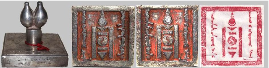 Хошуу захирах болон хутагтын тамга үйлдэх тухай Зарлигаар тогтоосон Монгол улсын хууль зүйлийн бичигт “. . . Нэгэн зүйлд олон засаг хутагтын шавь нарыг захирах тамга өөр өөрийн наян лан (1 лан-37.5гр) мөнгийг хэрэглэнэ. Дөрвөлжин тийш гурван ямх (гарын хурууны 1-р үеэс хурууны үзүүр хүртэлх зай, уртын хэмжүүрийн нэр, нэг ямх нь 32мм орчим), гурван пүн (уртын хэмжээ, нэг ямхыг арав хуваасны нэг хувь), зузаан тийш зургаан пүн, бариулд хос эрдэнэ. Бариулын өндөр тийш хоёр ямх дөрвөн пүн, тамганы төв хэсэгт цөм соёмбын эвам, зүүн барууны этгээд монгол үсэг сийлэгтүн. Үсэг журмыг Дотоод яамнаас тогтоож айлтгаад зарлиг буулгасны хойно тамга цутгах газарт тушааж цутган үйлдүүлэгтүн. Аливаа тамганы үсгийг халж олгуулбаас зохих эсвээс он удаж үсэг балархай болбоос зарилгийг гуйн айлтгаад халж олгуул. Хуучин тамгыг битүүмжлэн Дотоод яаманд хүргүүлж ирүүлээд эвдэж санд хураалгахтун” [Зарлигаар тогтоосон Монгол улсын 30-р дэвтэр] хэмээжээ.