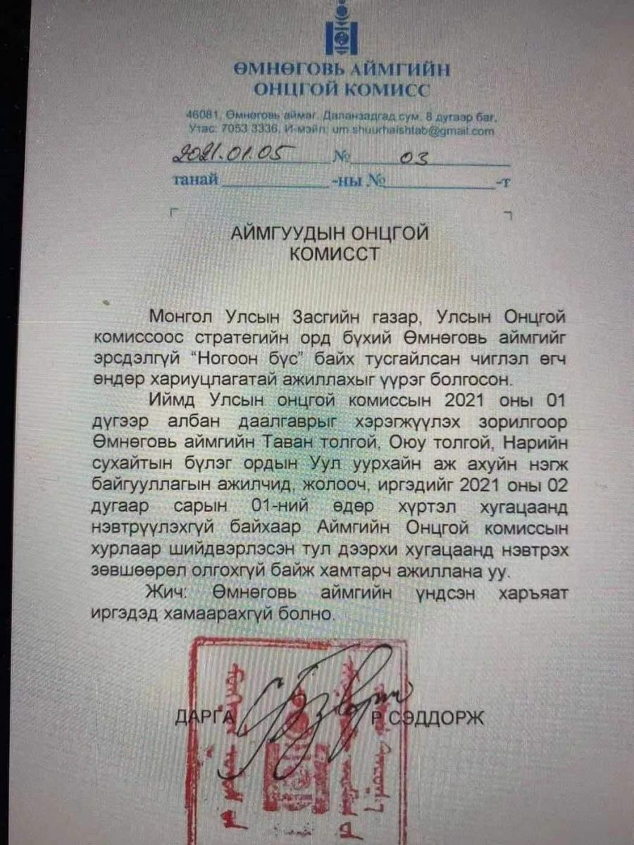 Өмнөговь аймгийн удирдлагууд хоёрдугаар сарын 1 хүртэл уурхайн ажилчдыг нэвтрүүлэхгүй байх шийдвэр гаргалаа.