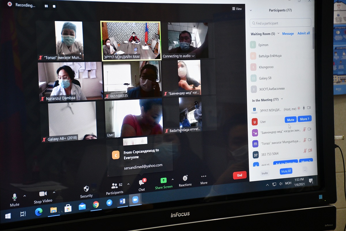 Эрүүл мэндийн Дэд сайд Ш.Анхмаа хувийн хэвшлийн эрүүл мэндийн чиглэлээр үйл ажиллагаа явуулдаг 100 гаруй байгууллагуудтай хэлэлцүүлэг зохион байгуулан “Эрүүл мэндийн яамнаас мөрдөгдөж буй хууль журмын хэрэгжилт, мэргэжлийн хяналтын байгууллагаас өгөгдсөн албан шаардлага цаашид анхаарч ажиллах асуудал” сэдвээр Эмнэлгийн тусламжийн бодлогын хэрэгжилтийг зохицуулах газрын дарга Я.Буянжаргал, “Коронавируст халдвар /ковид-19/-ын өнөөгийн нөхцөл байдал, анхаарах асуудал” сэдвээр ХӨСҮТ-ийн Дэд захирал Д.Наранзул, “Коронавируст халдвар /ковид-19/-аас сэргийлэхэд эрүүл мэндийн байгууллагуудын анхаарах асуудал, гүйцэтгэх үүрэг” сэдвээр ХӨСҮТ-ийн Тархвар судлаач, Клиникийн профессор М.Цолмон, “ЭМА-ны дундах халдварын байдал, анхаарах асуудал” сэдвээр ХӨСҮТ-ийн ЭШХ тасгийн эрхлэгч Ж.Нямсүрэн, “Коронавируст халдвар /ковид-19/ илрүүлэх шинжилгээнд сорьц цуглуулах, хадгалах, тээвэрлэх, лабораторийн шинжилгээний зохицуулалт” сэдвээр ХӨСҮТ-ийн НЛА-ны дарга С.Энхзаяа нар танилцуулга, мэдээлэл хийж, оролцогчдын зүгээс асуулт асууж, саналаа өглөө.