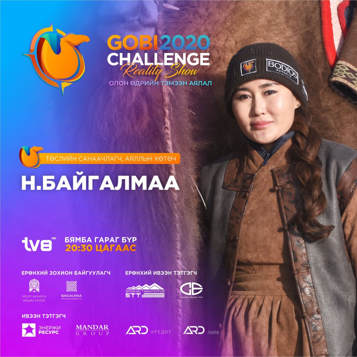 Үзэсгэлэнт байгалиараа гайхагддаг Монголын говь, говийн гайхамшиг хэмээгддэг тэмээн соёлыг сурталчлан таниулах “Gobi challenge-2020” олон өдрийн тэмээн аялал реалити шоу цуврал нэвтрүүлгийн анхны дугаар ирэх бямба гарагт буюу нэгдүгээр сарын 9-нд “ТВ8” телевизээр үзэгчдийн хүртээл болно. “Эрхэт Монгол” медиа групп, “Тэмээн жинчин” сангаас хамтран зохион байгуулсан “Gobi challenge-2020” төслийн  талаар “Тэмээн жинчин” сангийн тэргүүн Н.Байгалмаатай ярилцлаа.