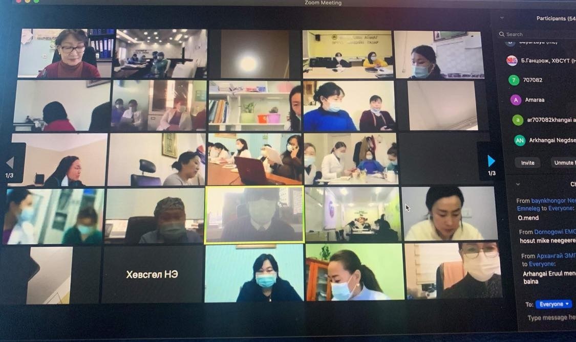 Эрүүл мэндийн яам, Халдварт өвчин судлалын үндэсний төв, Лабораторийн мэргэжлийн салбар зөвлөл, Дэлхийн эрүүл мэндийн байгууллага хамтран 2021 оны 01 сарын 07-09-ний өдрүүдэд 3 удаагийн бүсчилсэн онлайн сургалтыг амжилттай зохион байгуулж байна. Тус сургалтад 21 аймаг, 9 дүүргийн эрүүл мэндийн газрын дарга, мэргэжилтэн, тархвар судлаач, халдвар судлаач, лабораторийн эмч, мэргэжилтнүүд, өрхийн эмнэлгийн эмч, сувилагч нар болох 250 гаруй хүн оролцлоо.