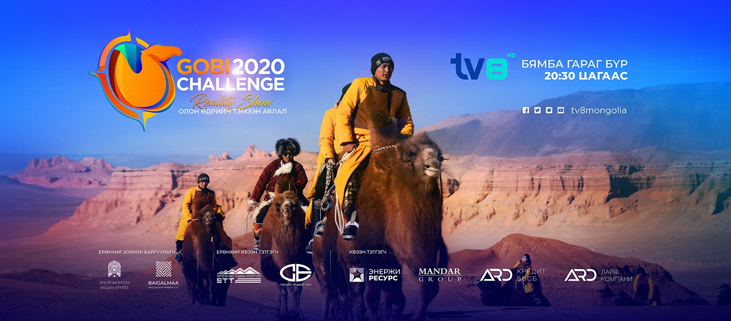 Үзэсгэлэнт байгалиараа гайхагддаг Монголын говь, говийн гайхамшиг хэмээгддэг тэмээн соёлыг сурталчлах “Gobi challenge-2020” олон өдрийн тэмээн аялал цуврал нэвтрүүлгийн хоёр дахь дугаар ирэх бямба /2021.01.16/ гарагийн 20:30 цагаас “ТВ8” телевизээр үзэгчдийн хүртээл болоход бэлэн боллоо. Долоо хоног бүрийн бямба гарагт зөвхөн “ТВ8” телевизээр цацагдах энэхүү реалити шоу нь Монголын үндэсний шинэ, шилдэг контентоор нэрлэгдэж байгаа юм.
