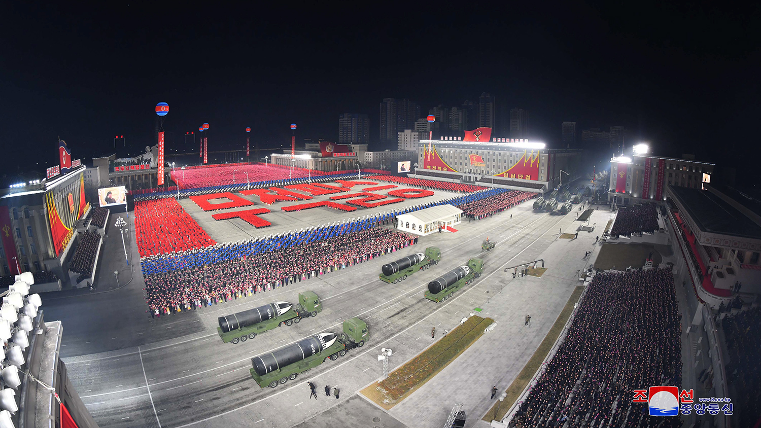 Хуралд зориулсан цэргийн сүрт жагсаал Пхеньян хотын Ким Ир Сений нэрэмжит талбайд шөнө явагдсан юм.