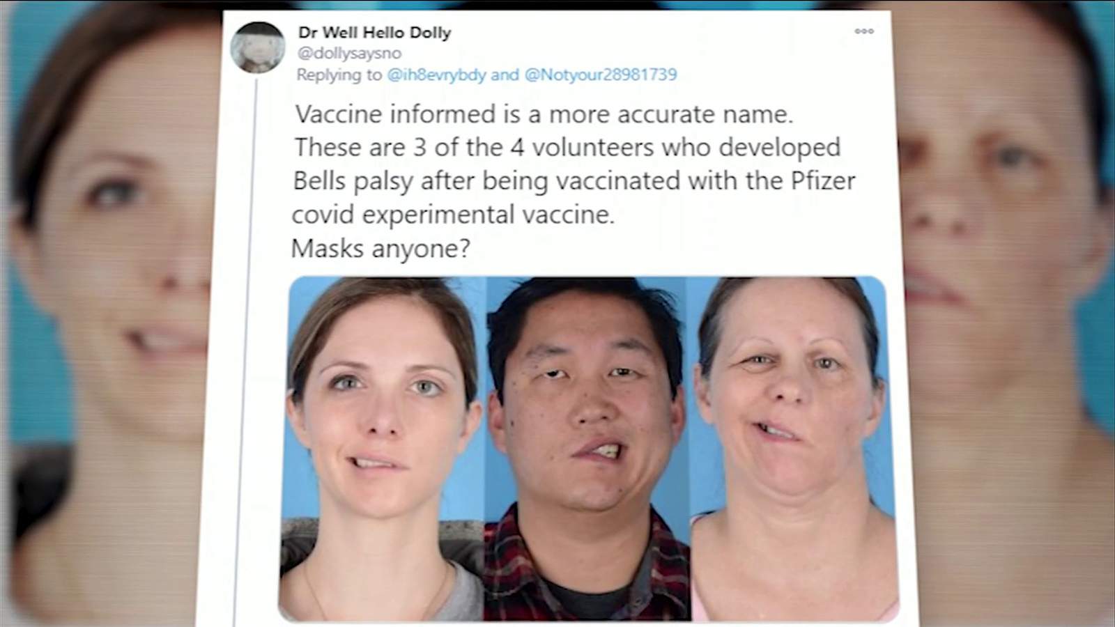Вакцин хийлгэсний дараа нүүр нь саажсан өвчтөний ярьснаар, тариа хийлгэсний дараа хэдэн минутын дараа эрүү болох аман дотор нь хачин зовуурь мэдрэгджээ. Энэ мэдрэмж 28 цаг үргэлжилсэн бөгөөд бүрэн арилаагүй ч өөр зовуурь мэдрэгдээгүй гэж тэрбээр ярьсан байна.