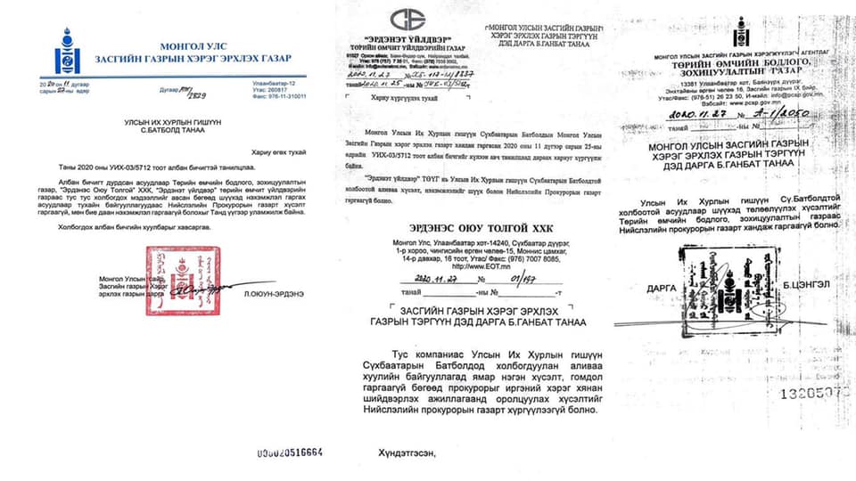 Мөн ЗГХЭГ, “Эрдэнэт Үйлдвэр” Төрийн өмчит үйлдвэрийн газар, Төрийн өмчийн бодлого зохицуулалтын газраас УИХ-ын гишүүн С.Батболдтой холбоотой асуудлаар шүүхэд нэхэмжлэл гаргах асуудлаар Нийслэлийн Прокурорын газарт хүсэлт гаргаагүй, мөн бие даан нэхэмжлэл гаргаагүй болохоо мэдэгдсэн гэсэн мэдээлэл байна.