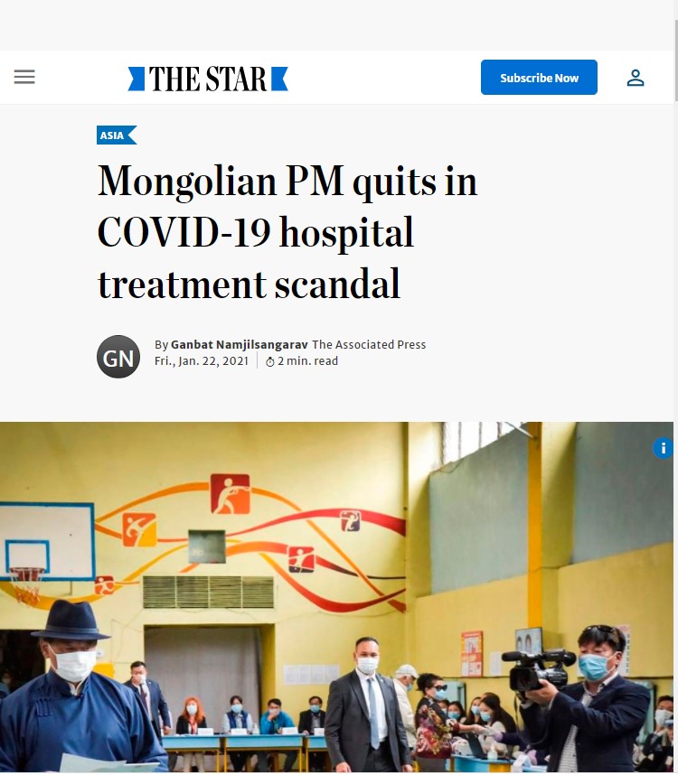 Associated Press: “Ковид-19” эмнэлгийн асуудлаас шалтгаалан Монгол Улсын Ерөнхий сайд огцорлоо