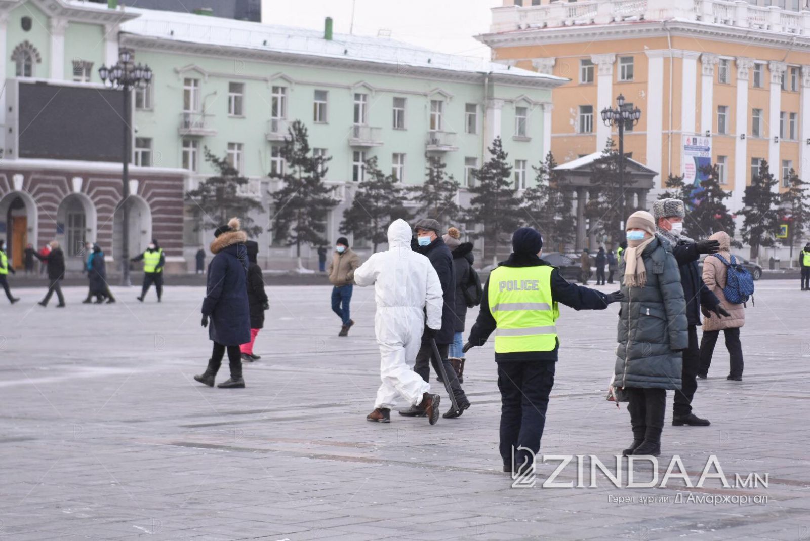 Тэгвэл төв талбайд байгаа иргэдийн дундаас халдварын нэгдүгээр хавьтал илэрсэн гэх мэдээллийг албаныхан өглөө. Тиймээс төв талбайн дотогш хэнийг ч нэвтрүүлэхгүй хамгаалалт аваад байна. Түүнчлэн тухайн иргэдийг тусгаарлах ажлыг зохион байгуулахаар ажиллаж байгаа аж. Мөн талбай дээр байсан иргэдээс шинжилгээ авах ажлыг шуурхай зохион байгуулан ажиллаж байна.
