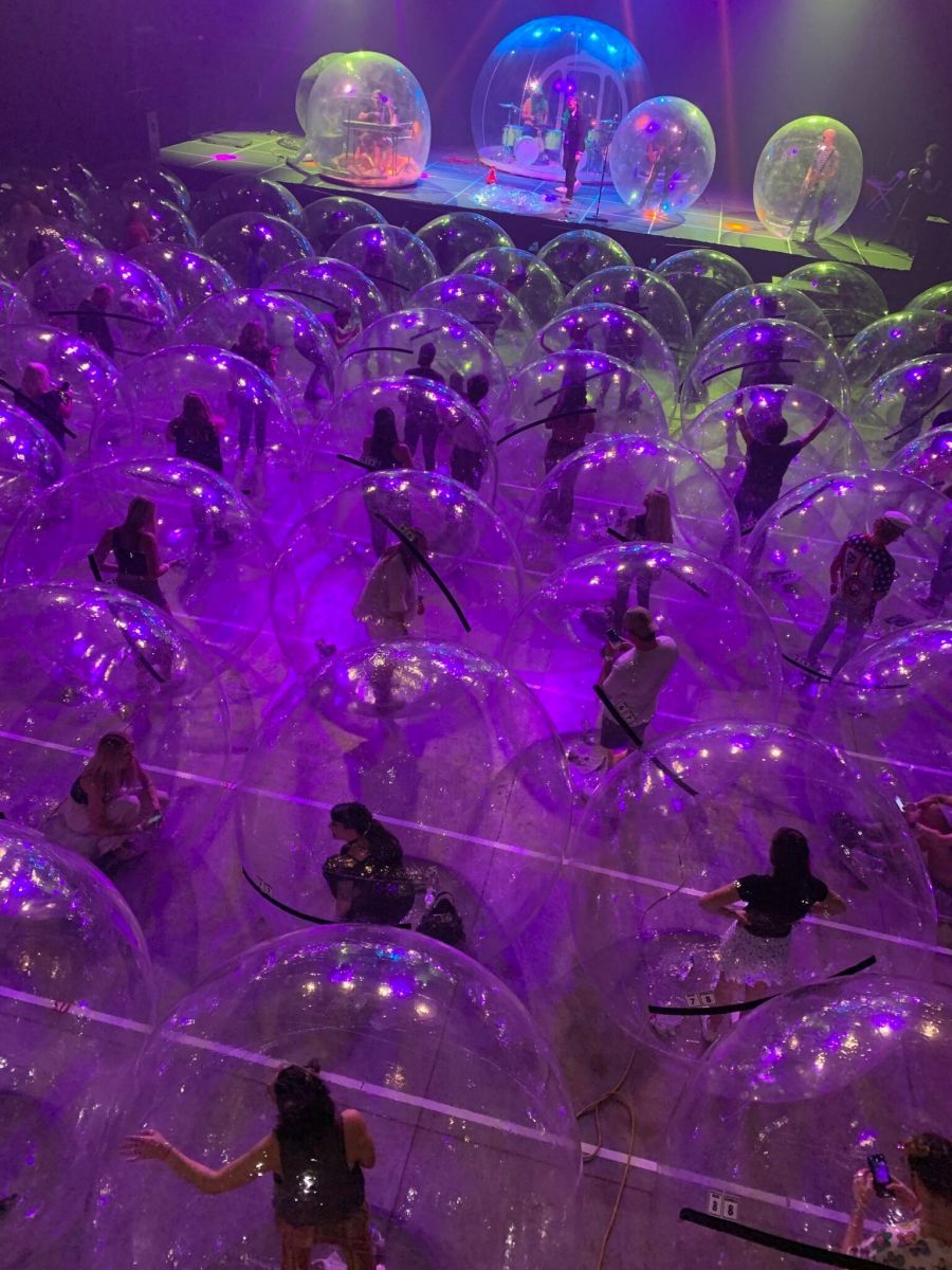 Дуучин, хөгжимчид ч мөн бөмбөлөгт тусгаарлагдсан цар тахлын үед л тохиолдох сонирхолтой концерт болсон байна.