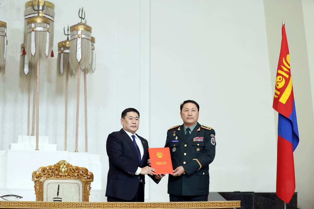 Монгол Улсын сайд, ЗГХЭГ-ын дарга Ц.Нямдорж БХЯ-нд хүрэлцэн ирж Батлан хамгаалахын сайдад төрийн тамгыг гардуулсан юм. Тэрээр “Батлан хамгаалахын сайдаар хоёр дахь удаагаа томилогдож байгаад баяр хүргэе. Миний бие 31 жилийн дараа БХЯ-нд ирлээ, сэтгэл маш өндөр байна. БХЯ, ЗХЖШ-ын удирдлагууд Та бүхэн Монгол цэргийн түүхэн уламжлалыг хадгалж басхүү өнөө цагт өртөөлөн түүчээлж, цэргийн бодлогыг хэрэгжүүлэх өндөр хариуцлагыг хүлээсэн хүмүүс гэдгийг онцлоод ажлын өндөр амжилт хүслээ.