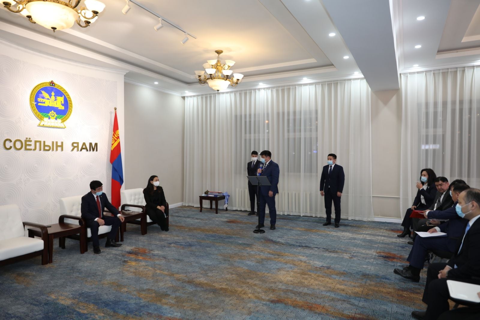 Монгол Улсын сайд, ЗГХЭГ-ын дарга Ц.Нямдорж Соёлын яаманд хүрэлцэн ирж, Соёлын сайд Ч.Номинд тамгыг нь гардууллаа. Ажил хүлээлцэхэд Соёлын сайд асан С.Чулуун байлцаж, шинээр томилогдсон Соёлын сайд Ч.Номинд ажлын амжилт хүсэв.