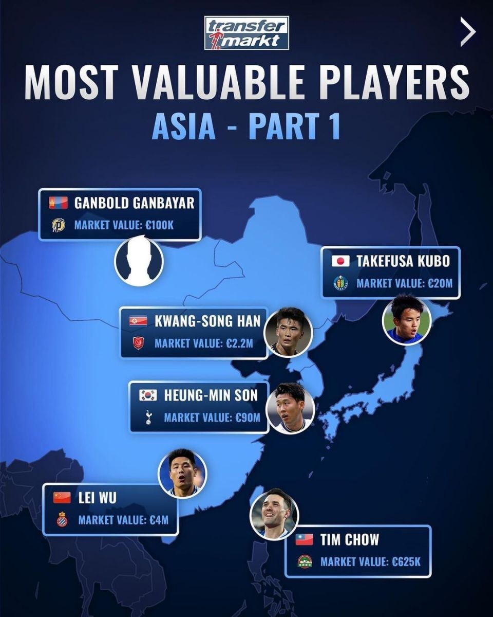 Transfermarkt.com сайтаас Ази хөлбөмбөгчдийн зах зээл дээрх үнийг шинэчлэн гаргажээ.