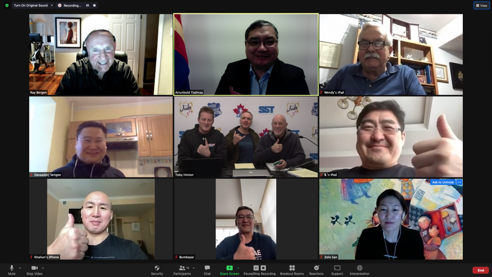 Канад улсад суугаа Монголын Элчин сайдын яам нэгдүгээр сарын 27-ны өдөр Монголын Жүдо бөхийн холбооны Ерөнхий нарийн бичгийн дарга Б.Ууганбаатар, Шигшээ багийн дасгалжуулагч Х.Болдбаатар, Жүдо-Эрдэм клубын захирал Ж.Энхсайхан болон Канадын Цагдаа-Жүдог үүсгэн байгуулагч, сургагч багш нар болох цагдаагийн ахлагч Тоби Хинтон, Ал Арсенол, Ванкувэр хотын Цагдаагийн газрын цагдаа-жүдогийн ахлах сургагч Брайн Шиппер, цагдаагийн ахлагч Марк Штайнкамп, Полис-Жүдогийн дэд ерөнхийлөгч Рэй Берген, Кен Дэвис нарын хооронд хийсэн цахим уулзалтыг зохион байгуулав.