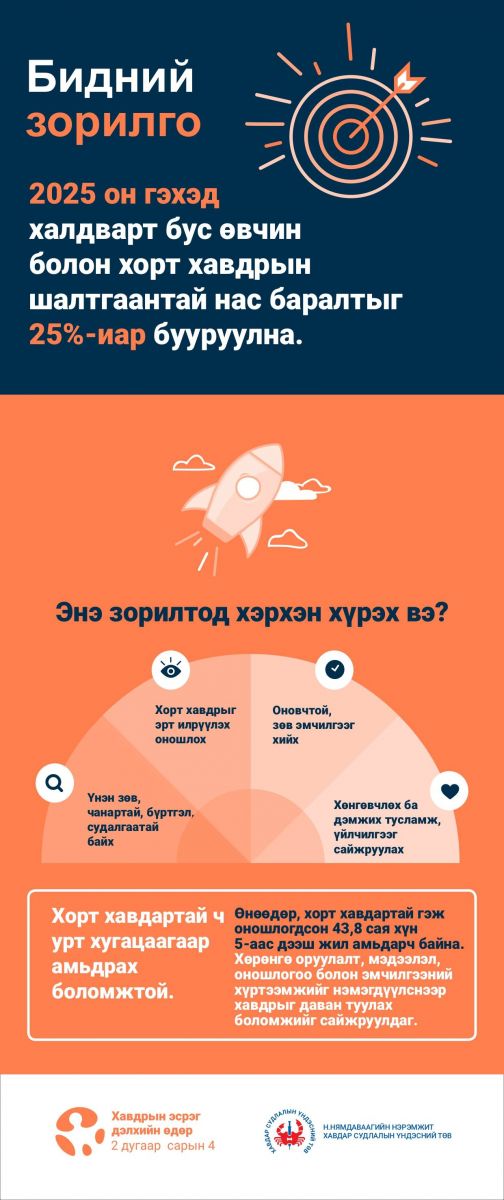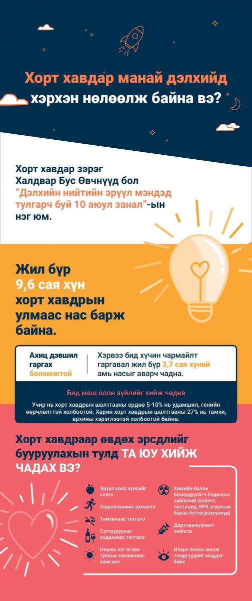 - Монгол улсын хүн амын нас баралтын 25 хувь нь хорт хавдрын шалтгаантай байна.
