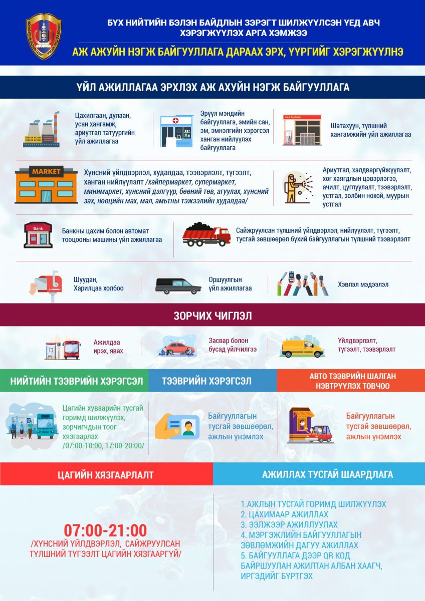 Улсын онцгой комисс өнөөдөр хуралдан 2021 оны хоёрдугаар сарын 11-ний өдрийн 06.00 цагаас хоёрдугаар сарын 23-ны өдрийн 06.00 цаг хүртэл нийслэлд Гамшгаас хамгаалах бүх нийтийн бэлэн байдлын зэрэгт хэсэгчилсэн байдлаар шилжих нь зүйтэй гэж үзсэн тухай мэдээллийг хүргэсэн. Улсын онцгой комиссын шийдвэрийг Засгийн газрын хуралдаанаар хэлэлцэн эцэслэх юм.