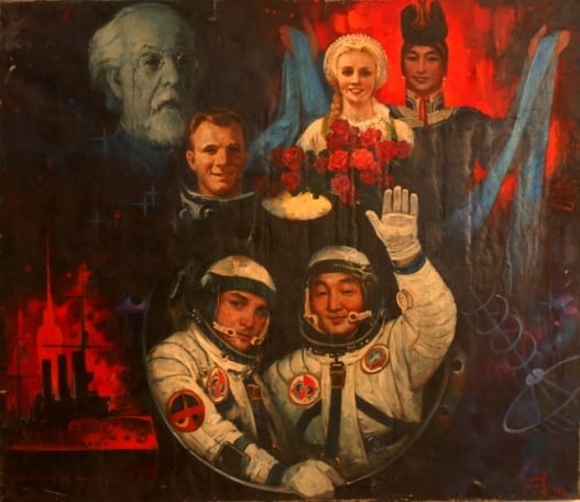 Монгол хүн анх сансарт ниссэн түүхт явдал Их зураачийн уран бүтээлд чухал байр эзэлдэг бөгөөд хоёр орны сансрын нисгэгчдийн хөргүүдээс гадна төрөл бүрийн бэлэг дурсгал, ил захидал, урилга, тэмдгийн эх загвар зохиожээ.