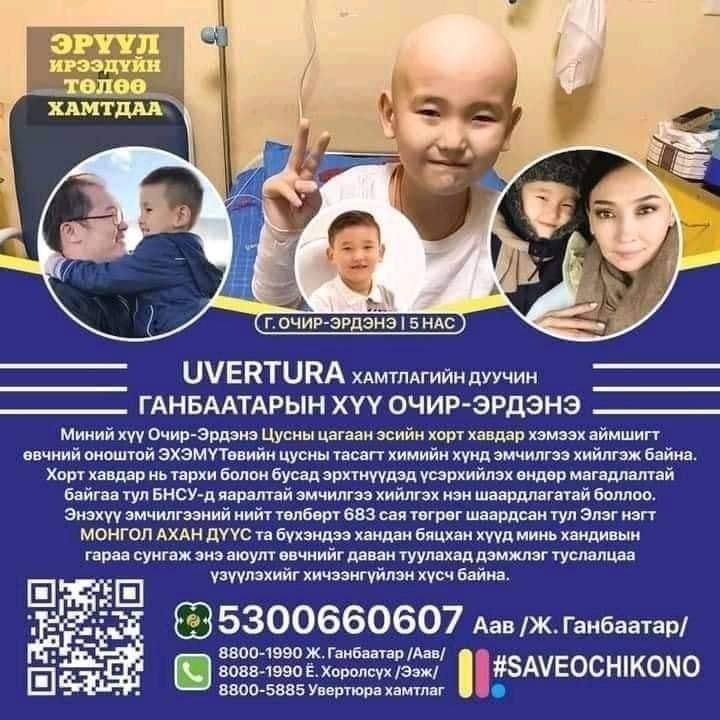 Та бүхэн энэхүү хийморлог бүтээлийн эзэн болж, цусны цагаан эсийн хорт хавдартай тэмцэж байгаа таван настай бяцхан хүү Г.Очир-Эрдэнэд тус болохыг хүсвэл зураачийн Batjin Boldbaatar фэйсбүүк хаягаар холбогдоорой.