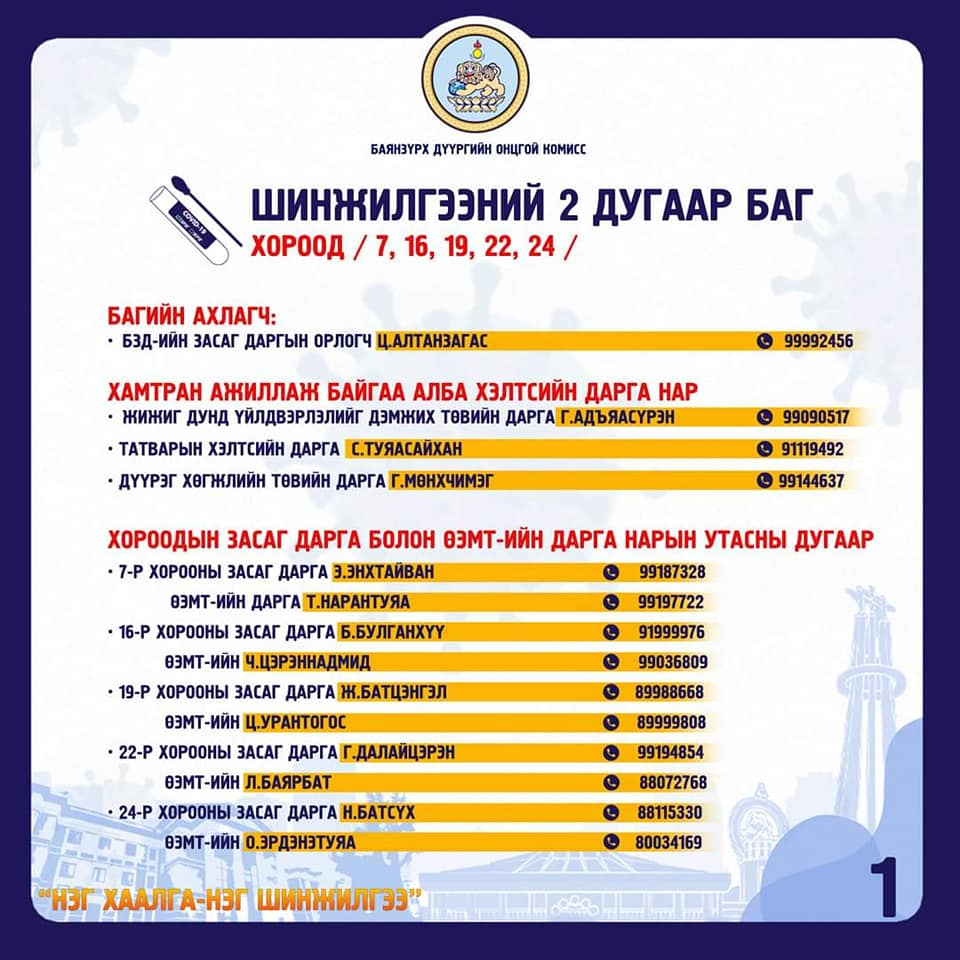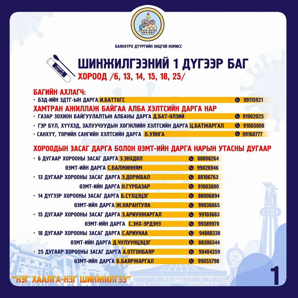 Тиймээс, Баянзүрхчүүд та бүхэн шинжилгээтэй холбоотой асууж тодруулах зүйлсээ хариуцсан дарга нараас нь тодруулж, шинжилгээндээ идэвхтэй хамрагдаарай.
