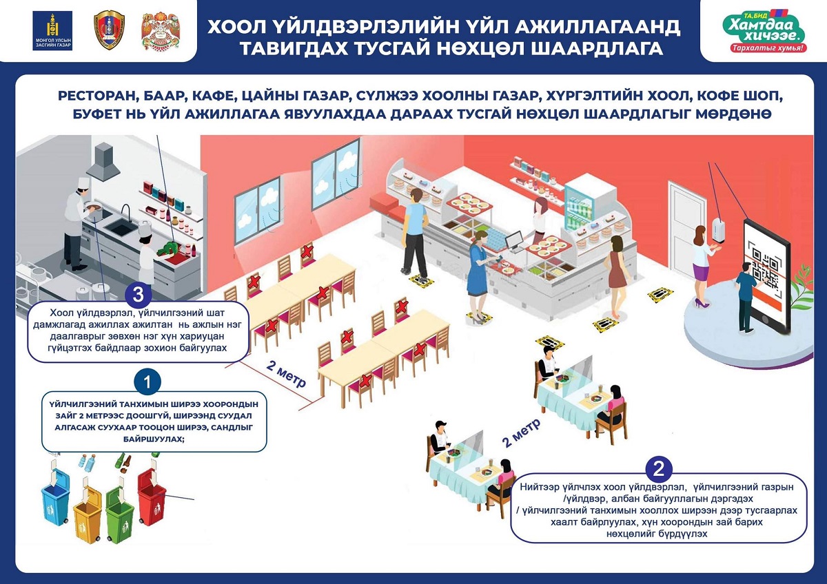Ресторан, баар, кафе, цайны газар, сүлжээ хоолны газар, хүргэлтийн хоол, кофе шоп, буфет нь үйл ажиллагаа явуулахдаа дараах тусгай нөхцөл, шаардлагыг мөрдөнө.